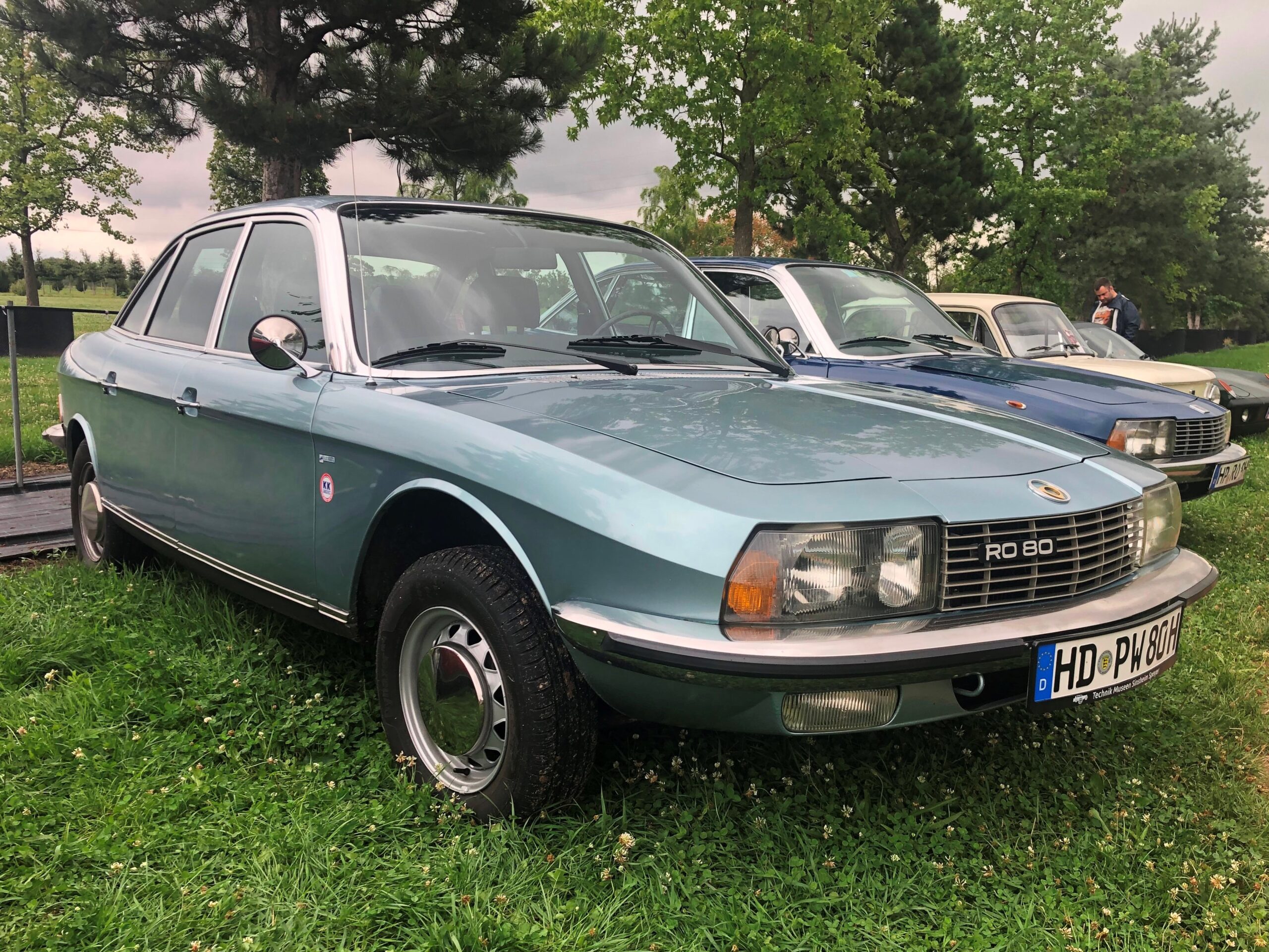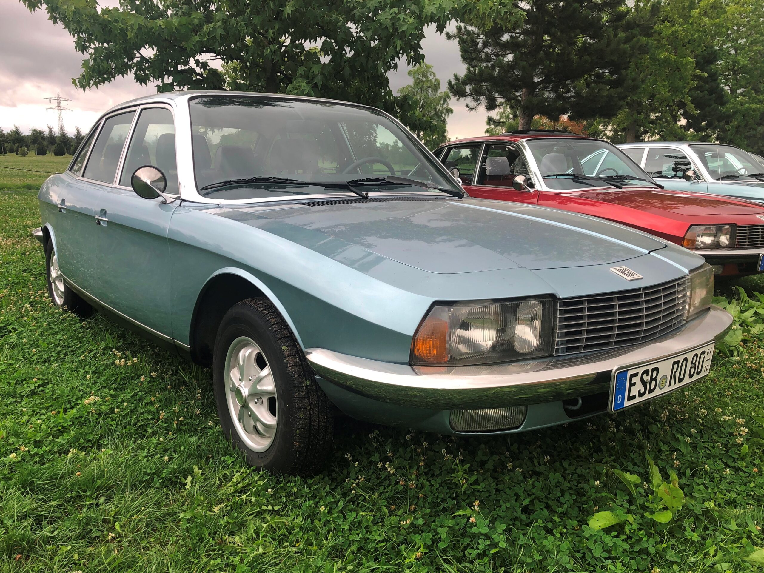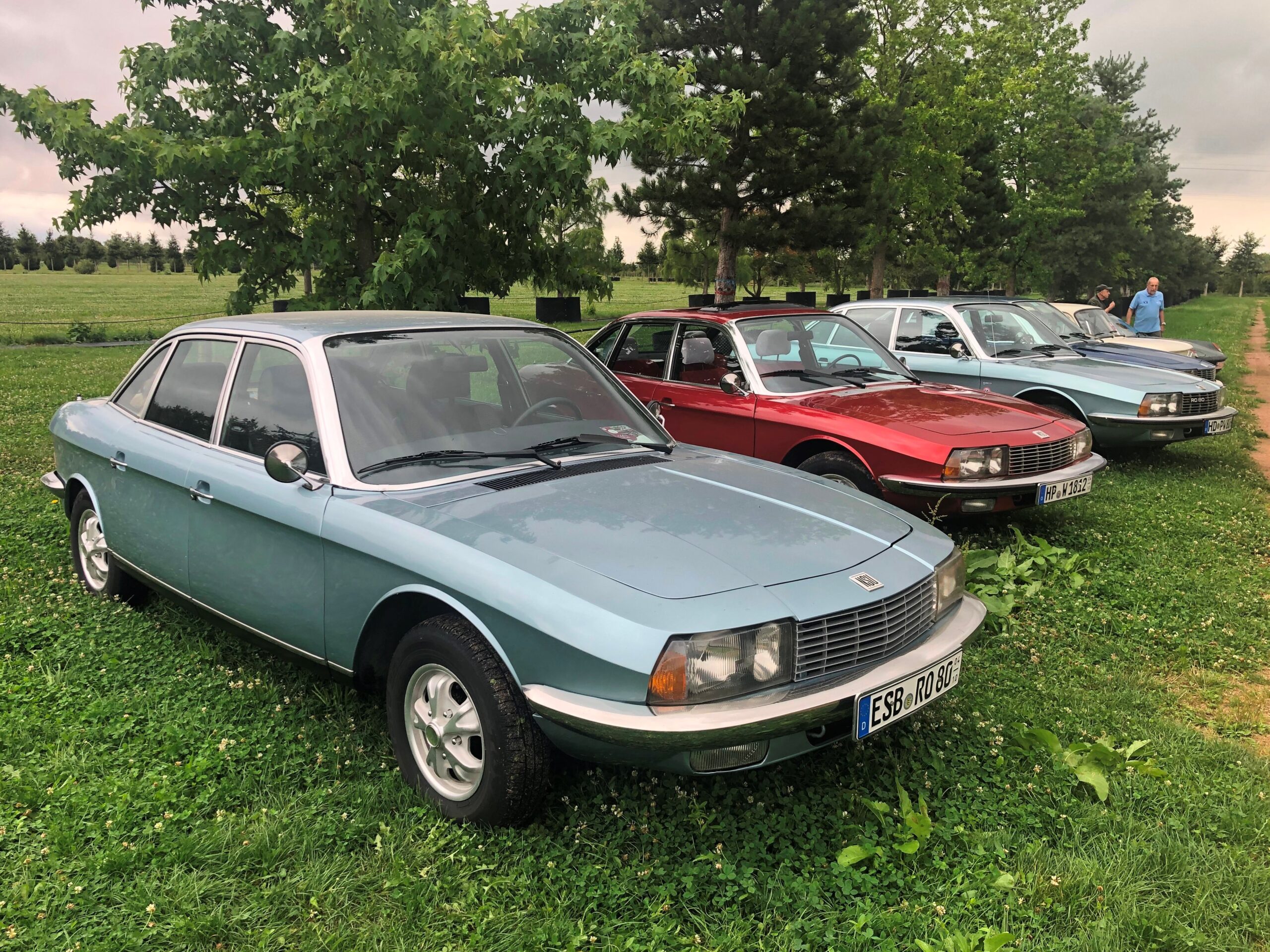 Dabei auch – als wenn sie sich abgesprochen hätten – vier NSU Ro 80, die ihrer Zeit damals (ich meine, der Ro 80 wäre 1967 erschienen) mit Wankelmotor und aerodynamisch gestylter Karosserie weit voraus waren.